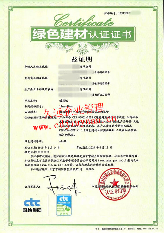 綠色產(chǎn)品認(rèn)證證書