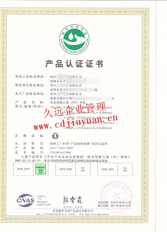 節(jié)水產(chǎn)品認(rèn)證證書